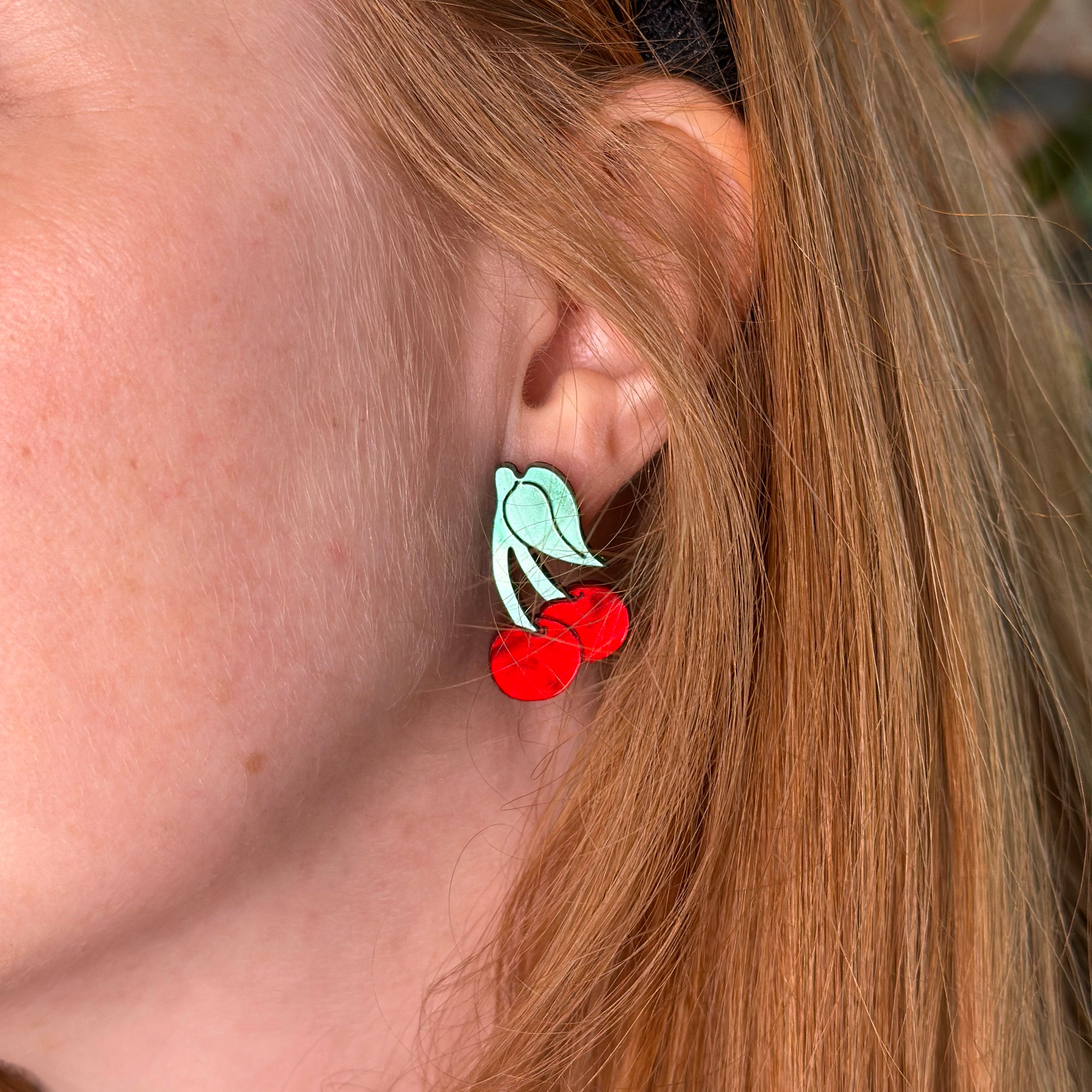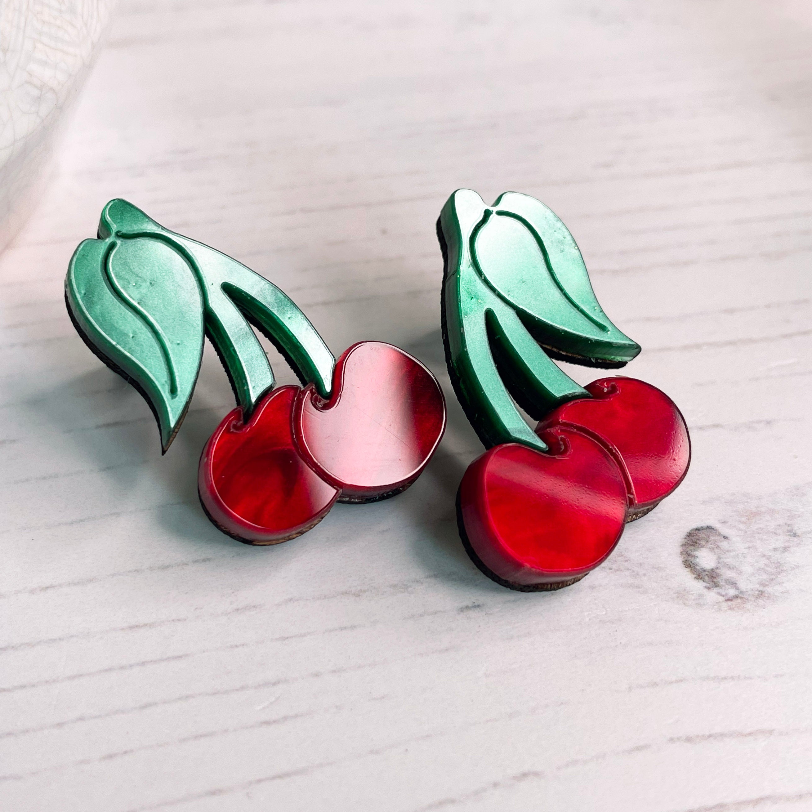 These stunning cherry earrings are made from using scraps of acrylic left over from Parkin and Lewis, we wanted to create something beautiful out of the waste materials and Bright Smoke was born. We love the colour of the beautiful marble red and green, it really makes them pop.