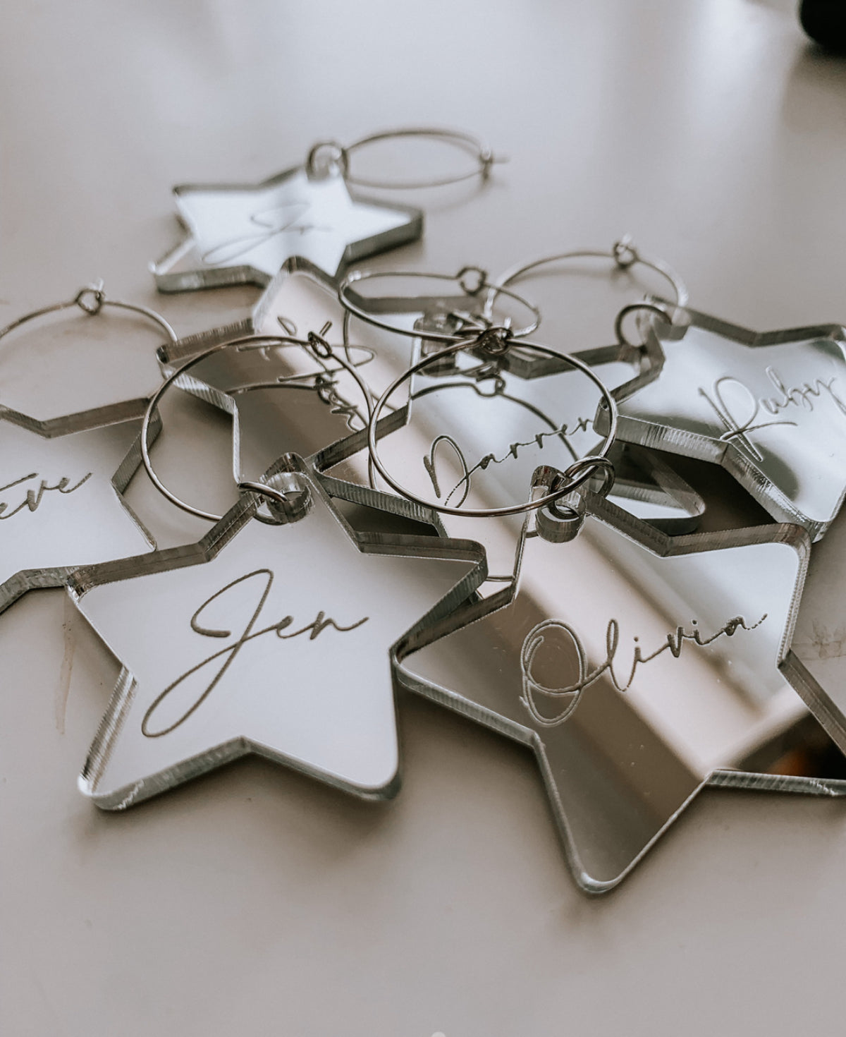You put your glass down and then can't remember whose glass is whose? This solves that problem, add you name to the tag and never wonder again- Very handy! Perfect dinner party accessory.