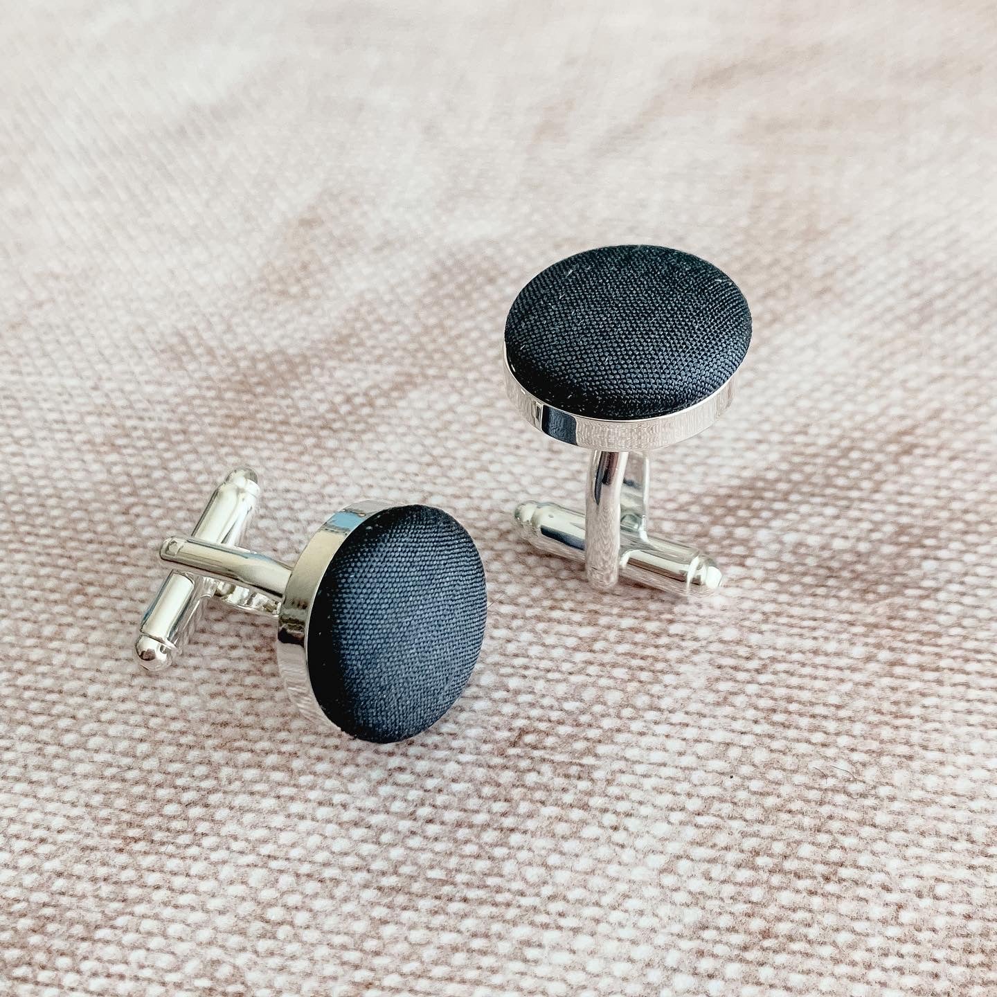 The rich texture and smooth finish of the silk fabric create a striking contrast against the metal of the cufflink base, making these cufflinks an eye-catching accessory that is sure to impress. The cufflinks are carefully crafted to ensure durability and longevity, ensuring that they can be cherished and enjoyed for years to come.
