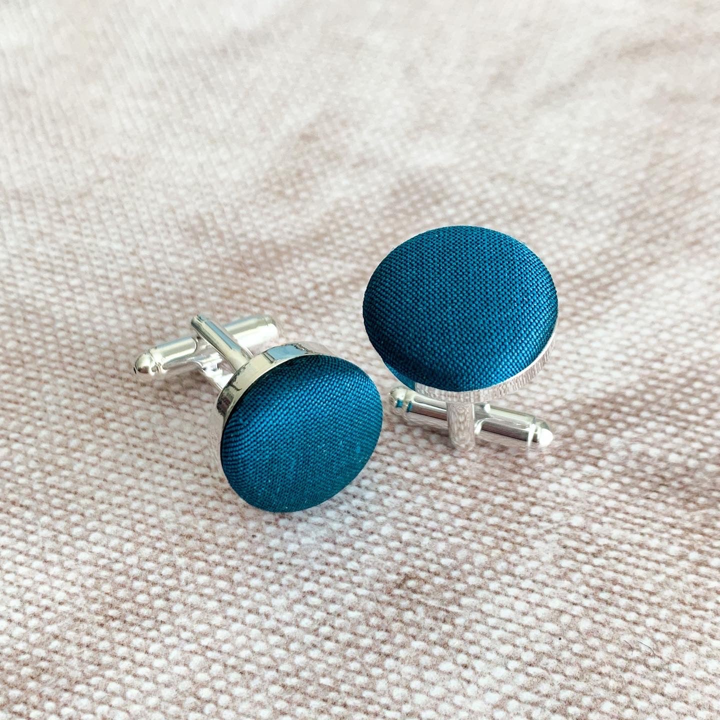 In summary, these Pure Dupion Silk Covered Cufflinks are a beautiful and sophisticated accessory that will enhance any wedding outfit. They make for a stunning gift for groomsmen, adding a personal touch to the special occasion that will be cherished for years to come.