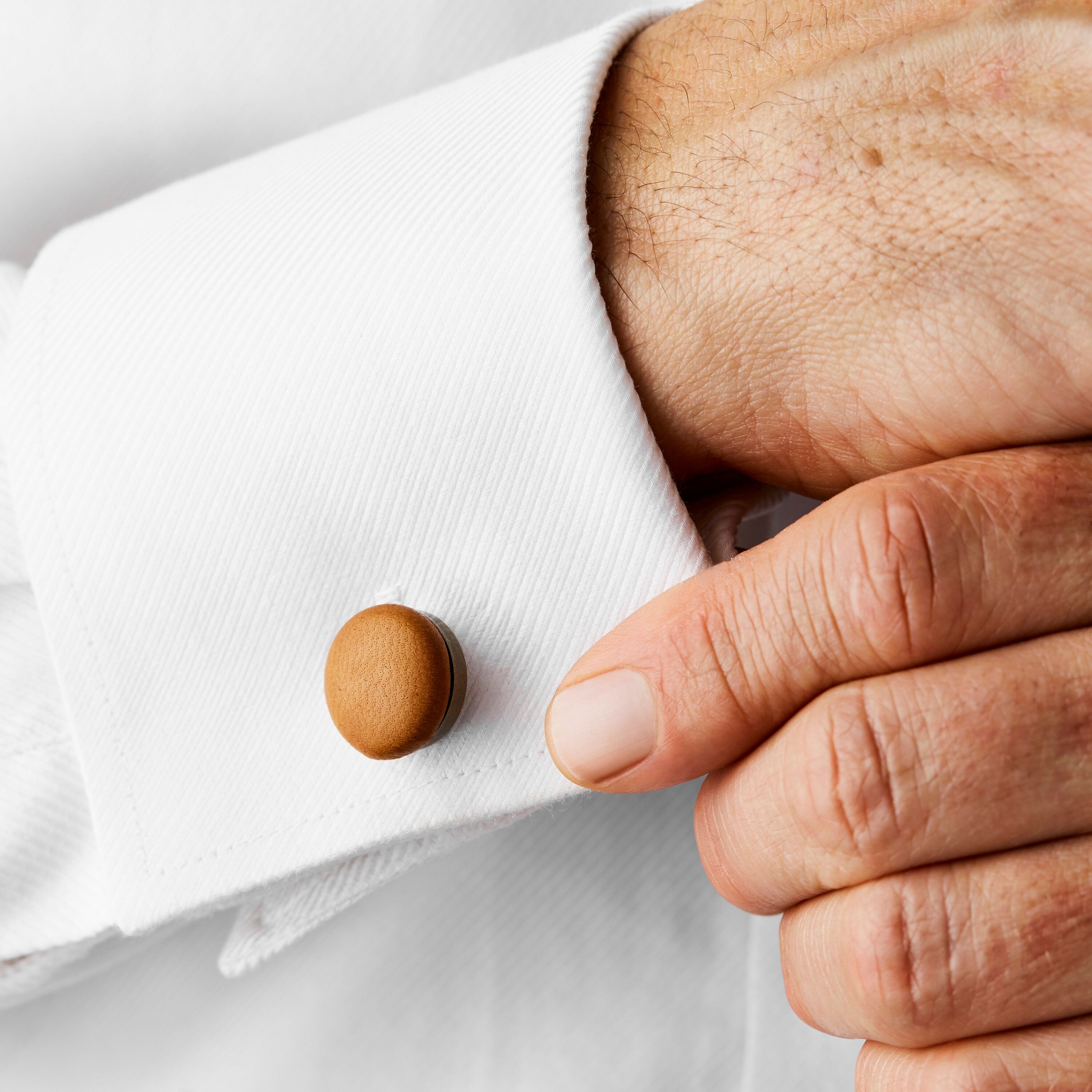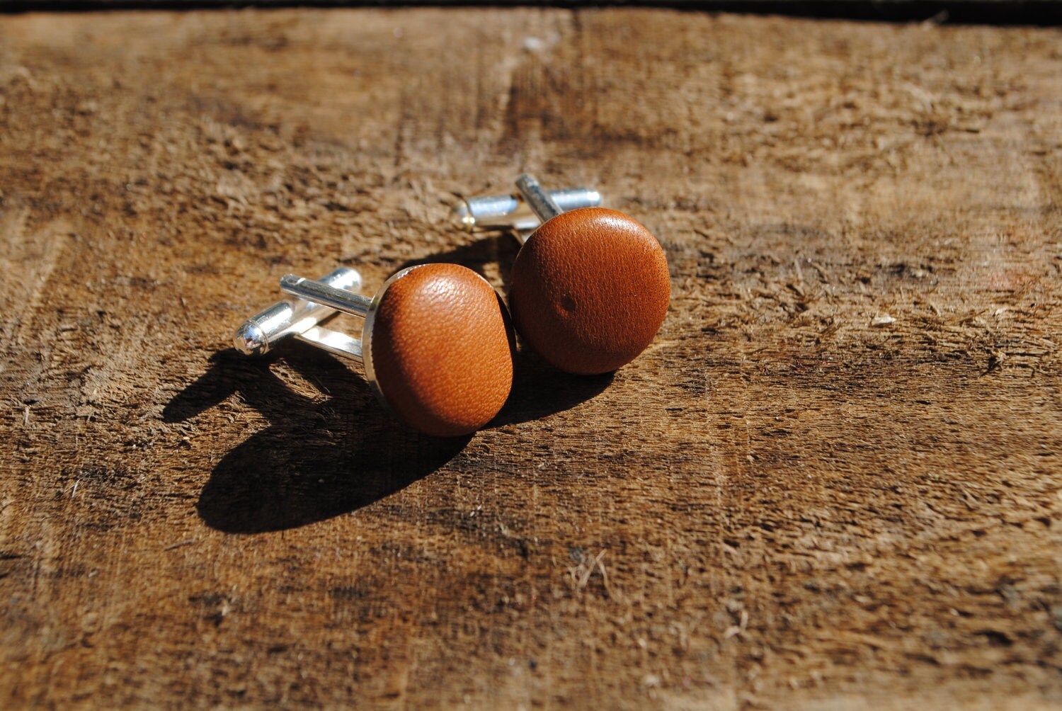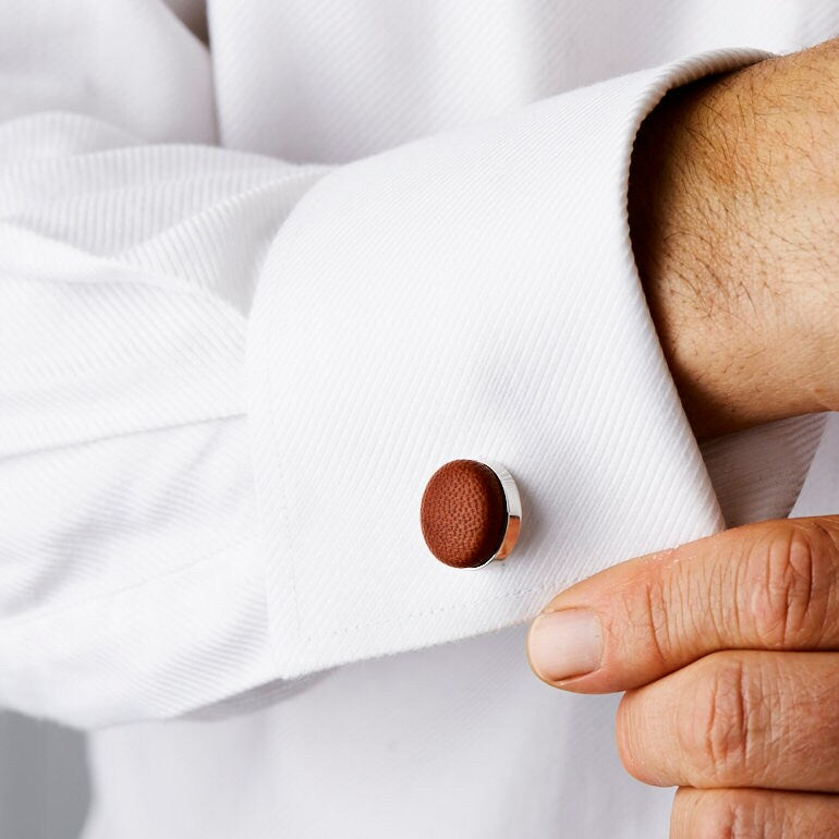 These cufflinks are perfect for adding a touch of personality and understated cool to accessorise a smart-casual outfit or a business suit. You could treat yourself to these "nice little extras" or give them as a thoughtful gift to someone who appreciates good taste. The rich tones of the natural leather texture give the cufflinks a rustic, masculine, yet luxurious aesthetic that exudes quality. They will wear well over time - becoming aged and interesting, developing a unique patina. A great detail when you want to dress to impress - simple and stylish.