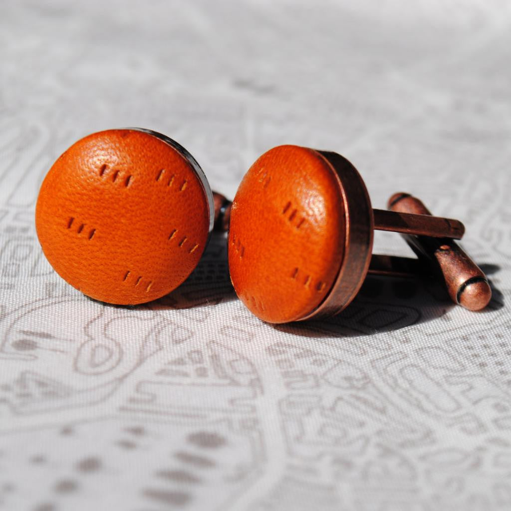 These leather cufflinks will wear well over time and become aged and interesting. Ideal for any gentleman with a passion for an original item in a range of traditional, classic leather colours.