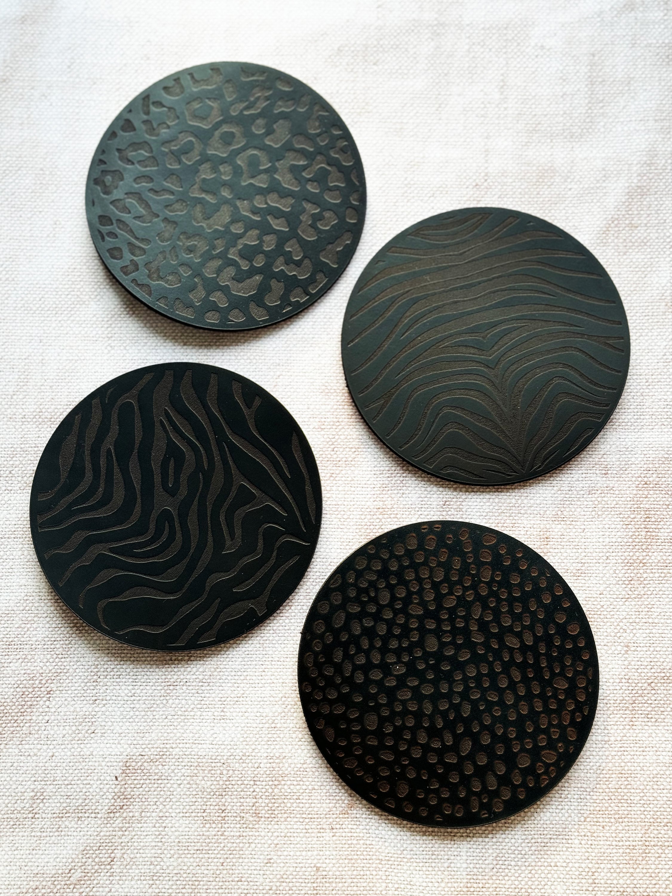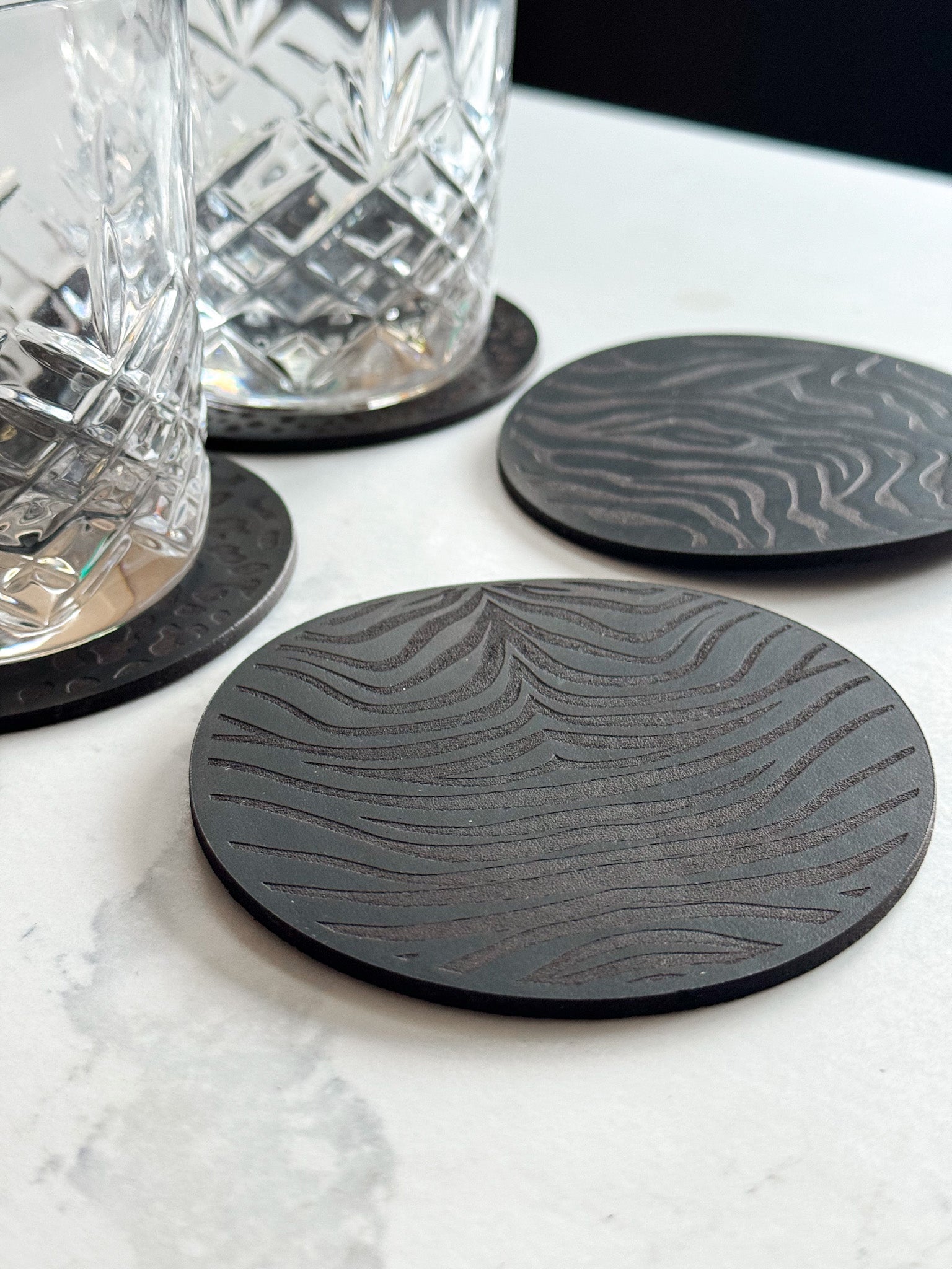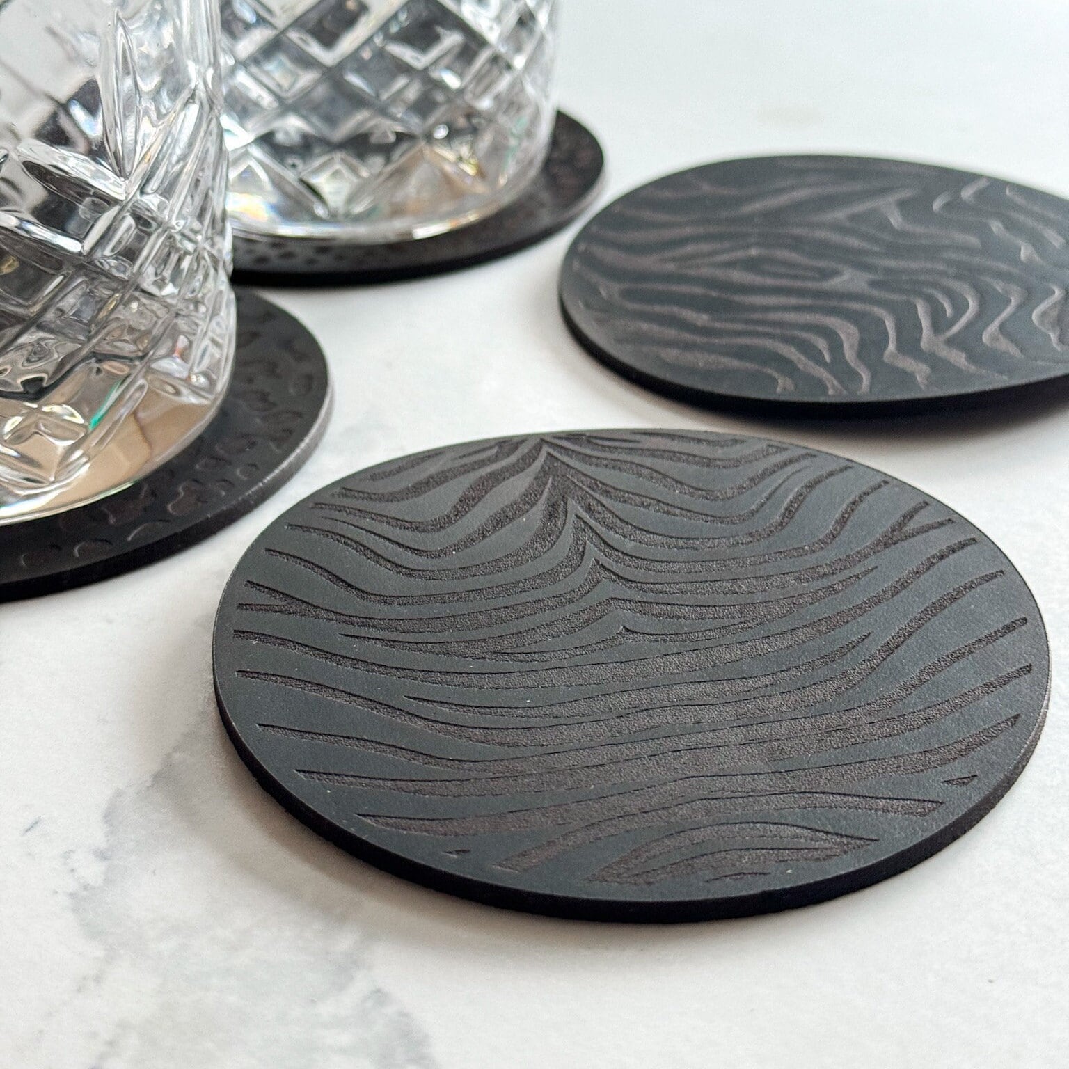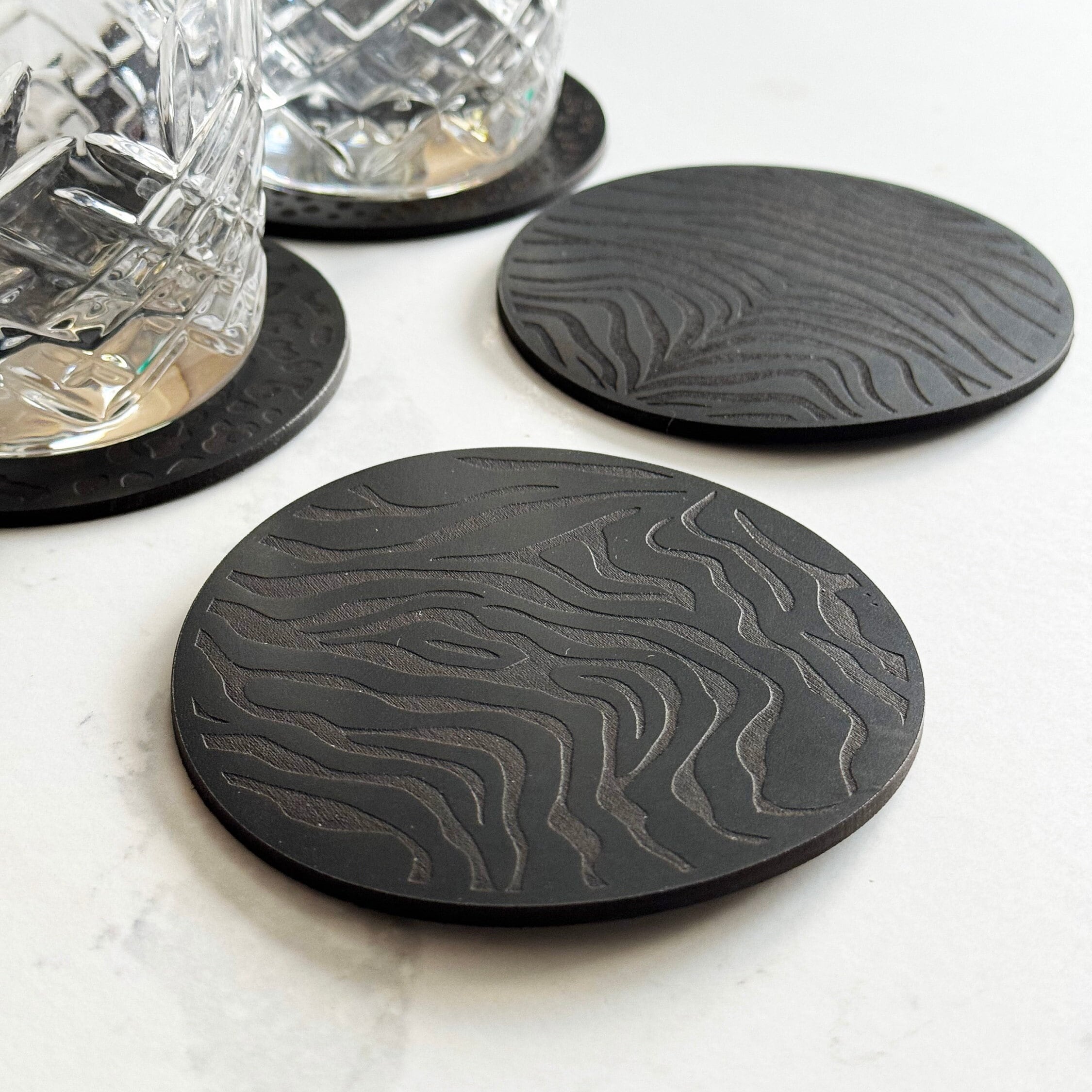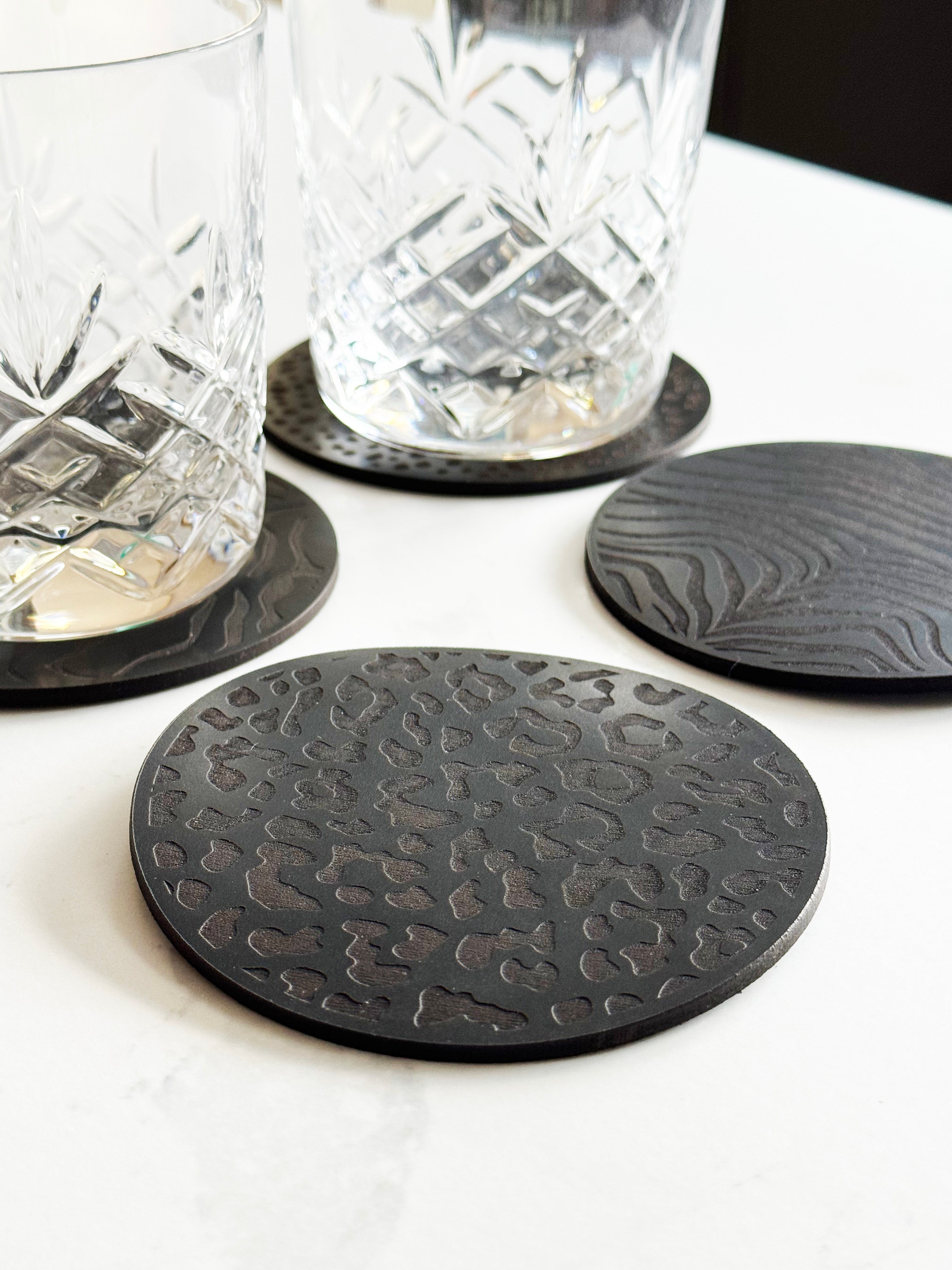 Revitalise your living space with our Leather Laser Engraved Animal Print Coasters, transcending the conventional with a harmonious blend of style and functionality. Available in the classic allure of Black Leather or the inviting warmth of Tan Leather, these coasters redefine home decor. The laser-engraved precision of Leopard and Zebra prints transforms each coaster into a distinctive work of art, capturing the essence of the wild with unparalleled detail.