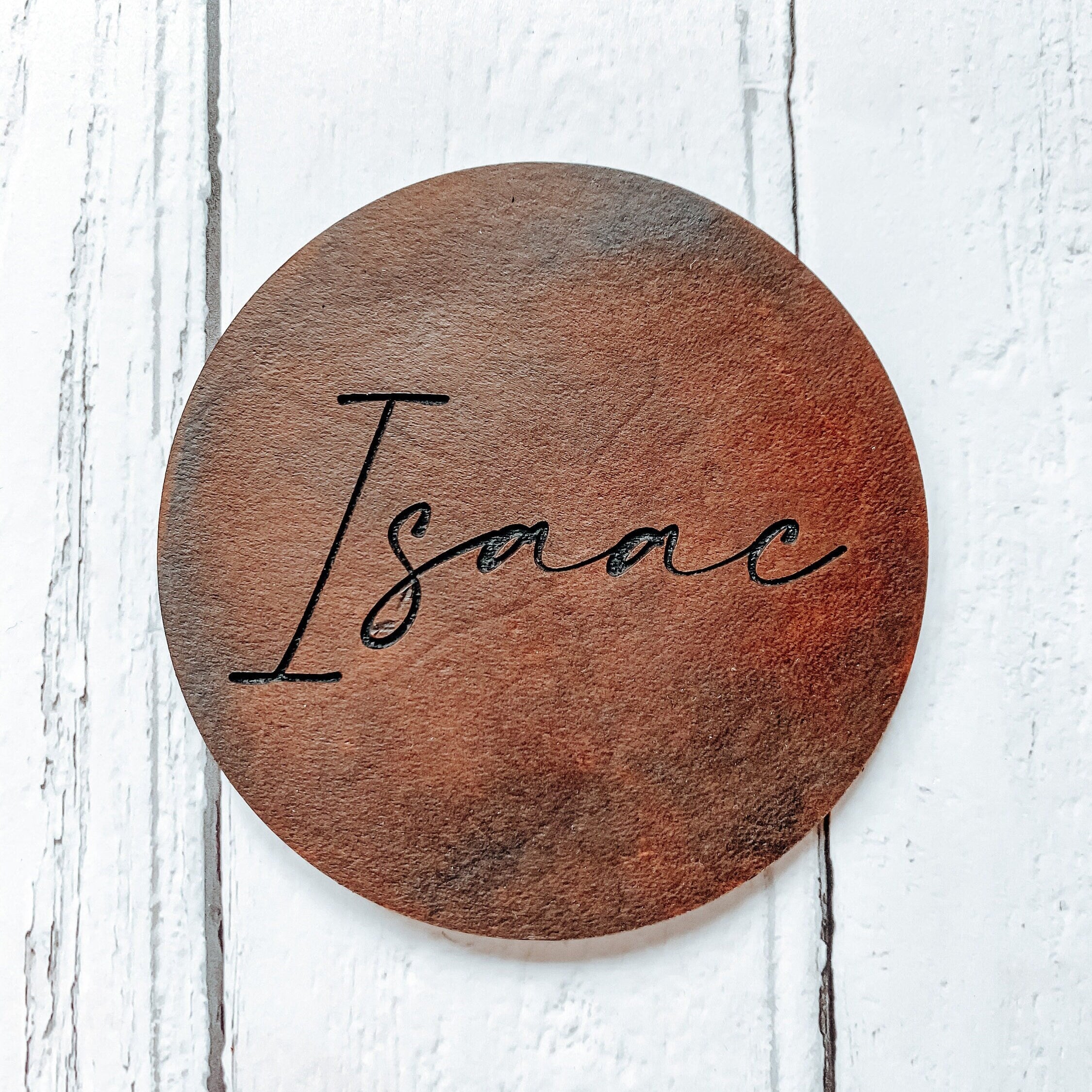 Gorgeous engraved leather coaster that would make a lovely place setting at a dinner party or even a wedding favour. These would also make a gorgeous anniversary gift. Leather is traditionally given for the 3rd. Each coaster is made and dyed to order.