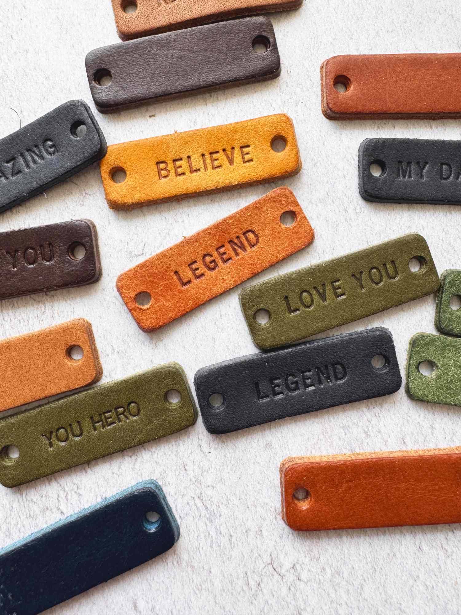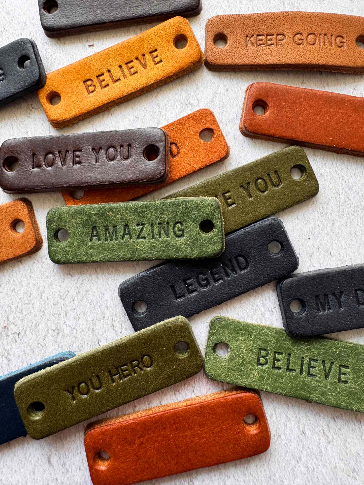 Each tag is individually handmade from premium, vegetable-tanned leather, carefully cut, dyed, and engraved to order. The tags are designed to slide neatly onto your trainer or sneaker laces, creating a subtle but powerful statement that moves with you wherever you go.