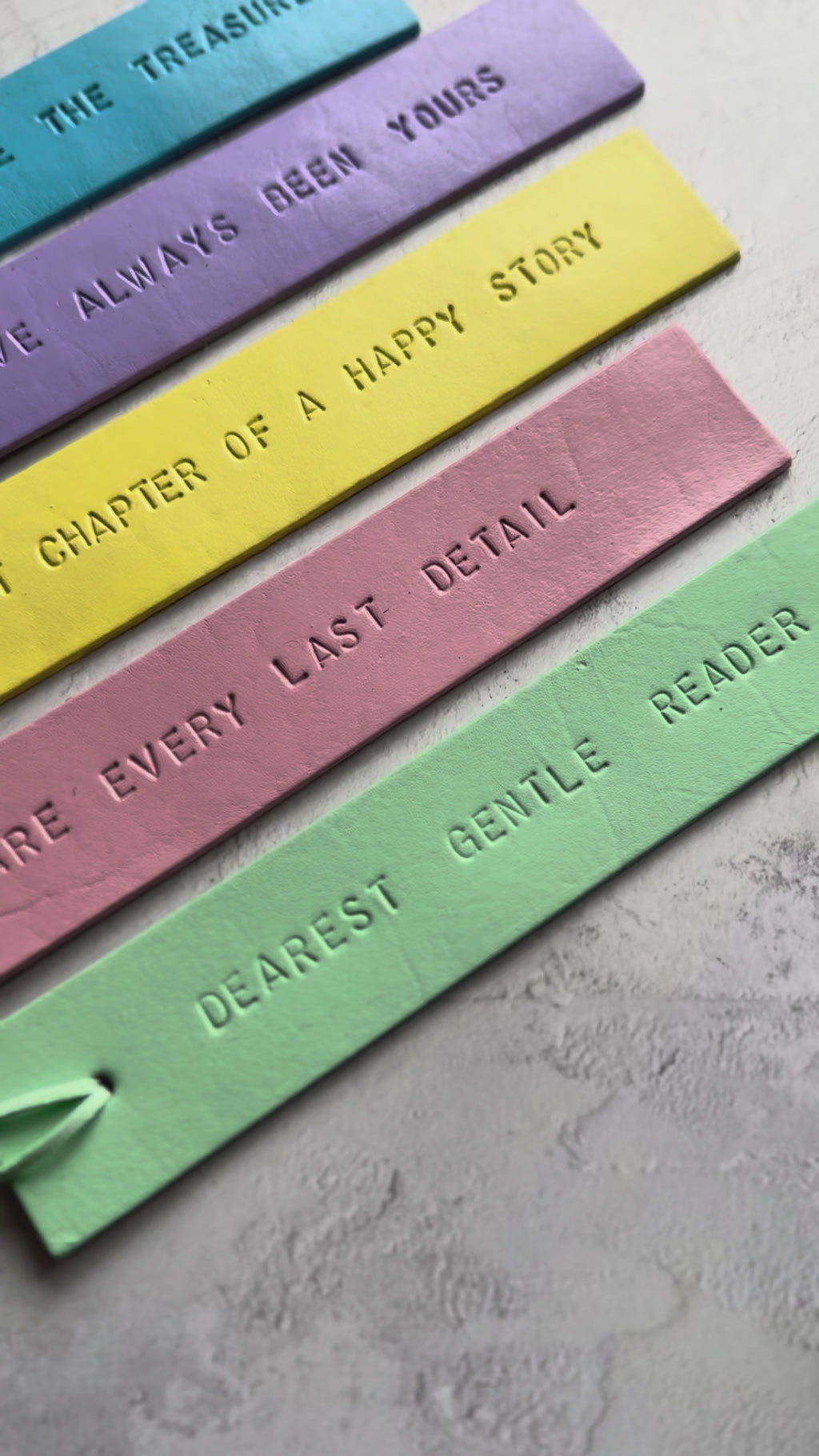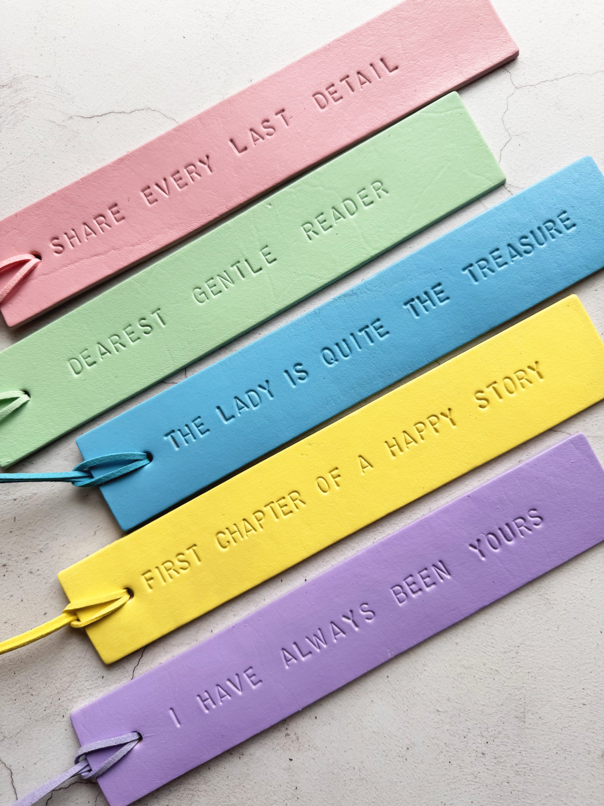 Add a pop of colour to your reading with these beautifully handcrafted pastel leather bookmarks. Each one is made from high-quality vegetable-tanned leather and carefully hand-painted in soft, uplifting shades of blue, lilac, pink, yellow, and mint green.