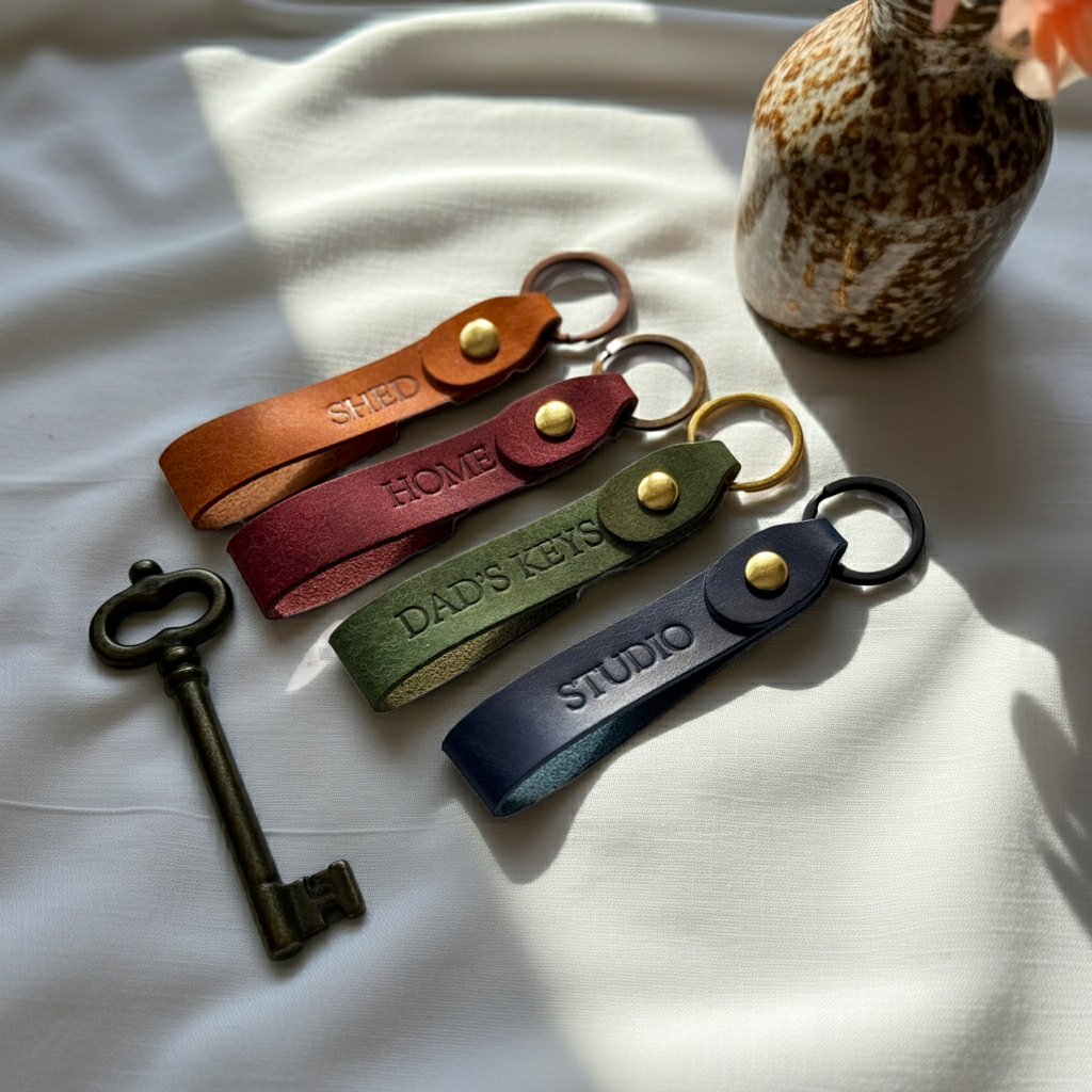Keep your keys beautifully organised with our handcrafted Personalised Leather Loop Keyring – a timeless piece designed for everyday use. Each keyring is handmade in my Surrey studio using premium Italian vegetable-tanned leather, chosen for its rich texture, character, and long-lasting quality.