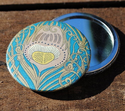 This small mirror fits perfectly into make bags or purses. They can be made using any other material you see on my page so if you would prefer a different pattern or style please get in contact with me via the "ask the seller" section.